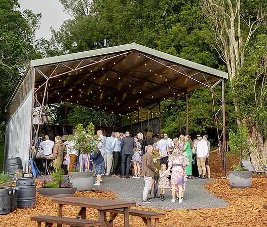 Positioned beneath the canopy of breathtaking native Tawa trees, this large open-aired platform offers a unique outdoor wedding and event space in the Waikato. Designed to be shared, it invites you to step beyond the four walls of a traditional venue and into a natural glade where weddings and rustic events unfold with ease, and both guests and hosts feel restored by the surroundings.